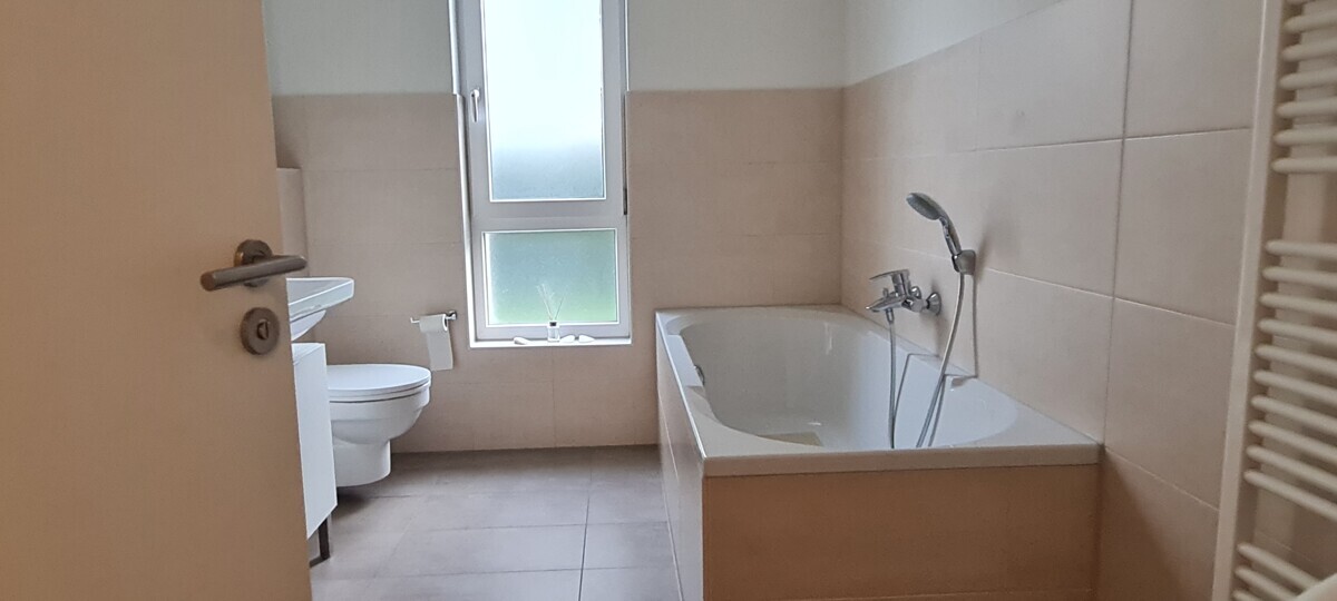 - modernes und helles Bad mit Wanne und Dusche
